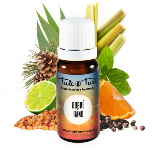 Směs Dobré ráno je vyrobená ze 100% esenciálních olejů-silic bazalka, pepřovník černý, eukalyptus, kadidlo, citronová tráva, limetka, pomeranč a borovice. Směs dobré ráno je navržena pro rychlejší start do rušného dne před námi. Pomáhá nám probudit a rozzářit mysl.